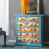 Aino laatikostossa on seitsemän leveää ja kaksi keskikokoista laatikkoa, metallisilla liukukiskoilla varustettuna.