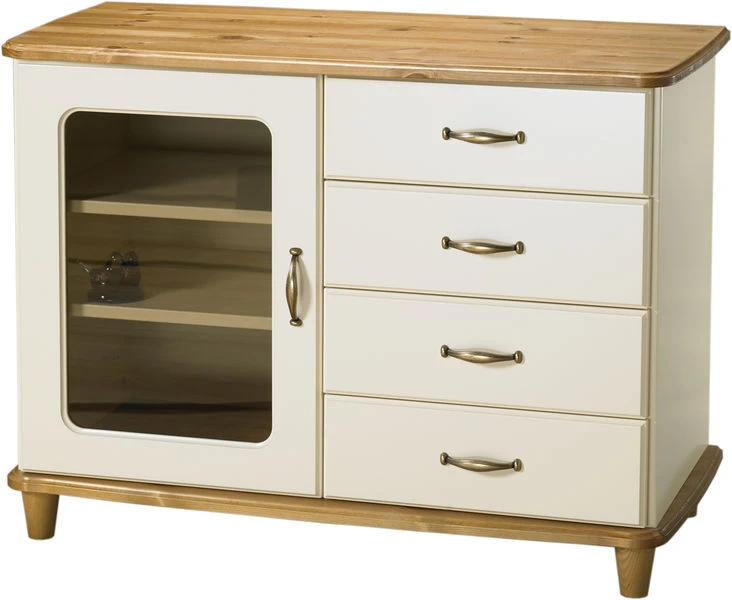 Aino 95-104 lipastossa on 4 tilavaa vetolaatikkoa sekö lasiovikaappi kahdella välihyllyllä.