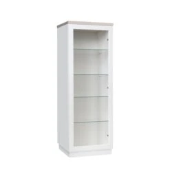 Näyttävässä Aino vitriinissä on 4 lasiovellista kaappia välihyllyillä sekä 9 kpl tilavia vetolaatikoita. Aino vitriiniin saat tärkeimmät esineesi kauniisti esille.