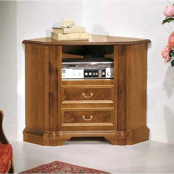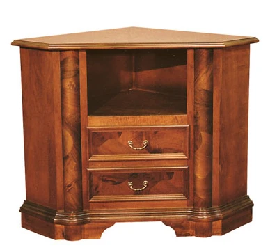Amanda-kulma tv-tasossa on kaksi vetolaatikkoa ja yläosassa avohylly.