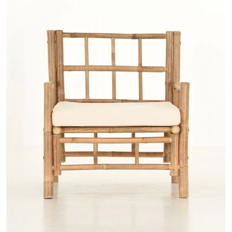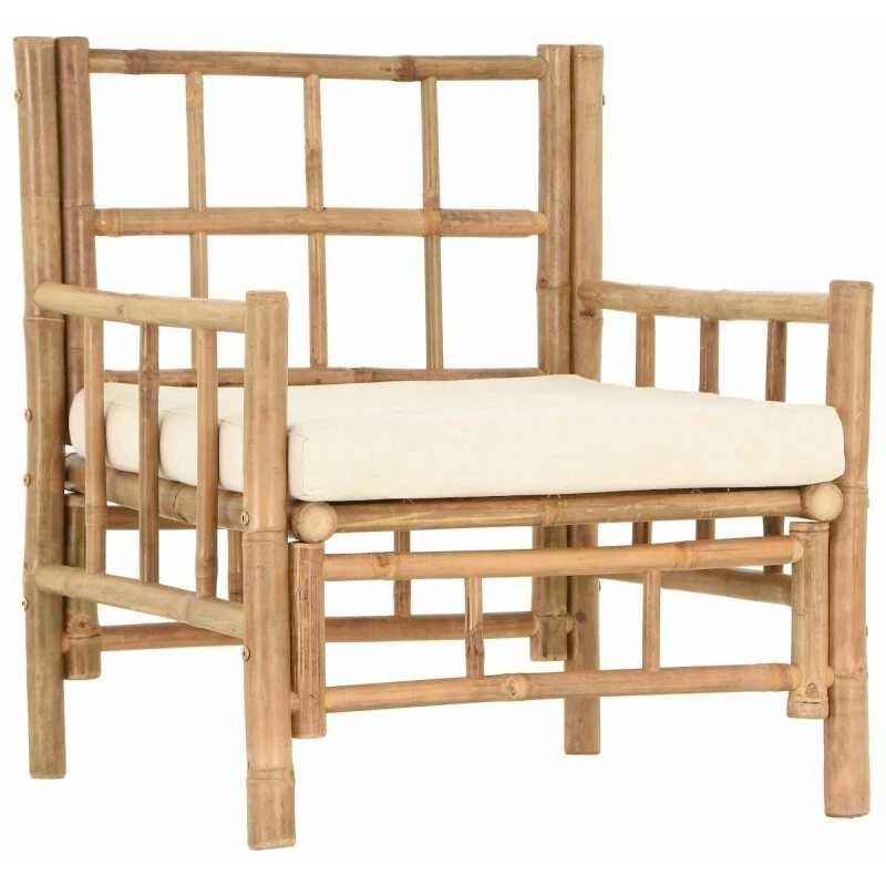 Trendikäs Bambu lepotuoli istuinpehmusteella sopii erinomaisesti sisätiloihin sekä katetuille terasseille, patioille tai parvekkeille.