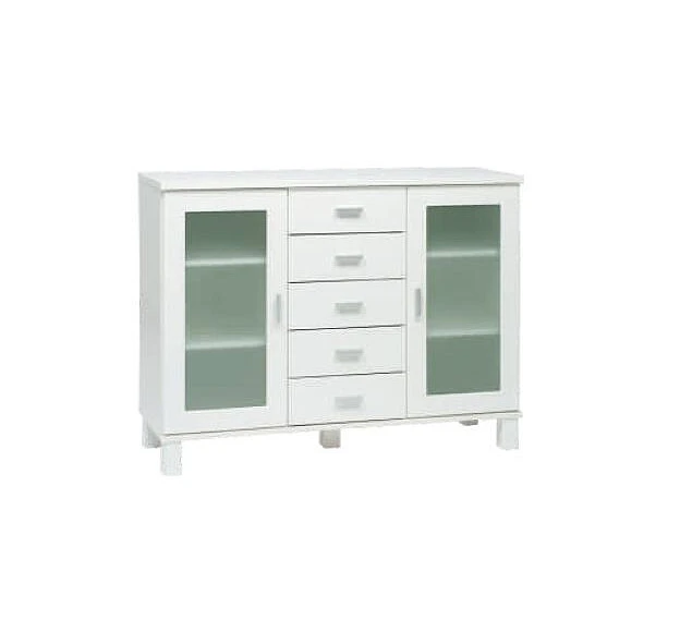 Korkealaatuisen Fondi-tuotesarjan senkki kahdella ovikaapilla ja neljällä vetolaatikolla. Lasiovien takana on 2 kpl korkeussäädettäviä hyllyjä. Voit valita oveen kirkkaan lasin tai maitolasin.