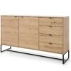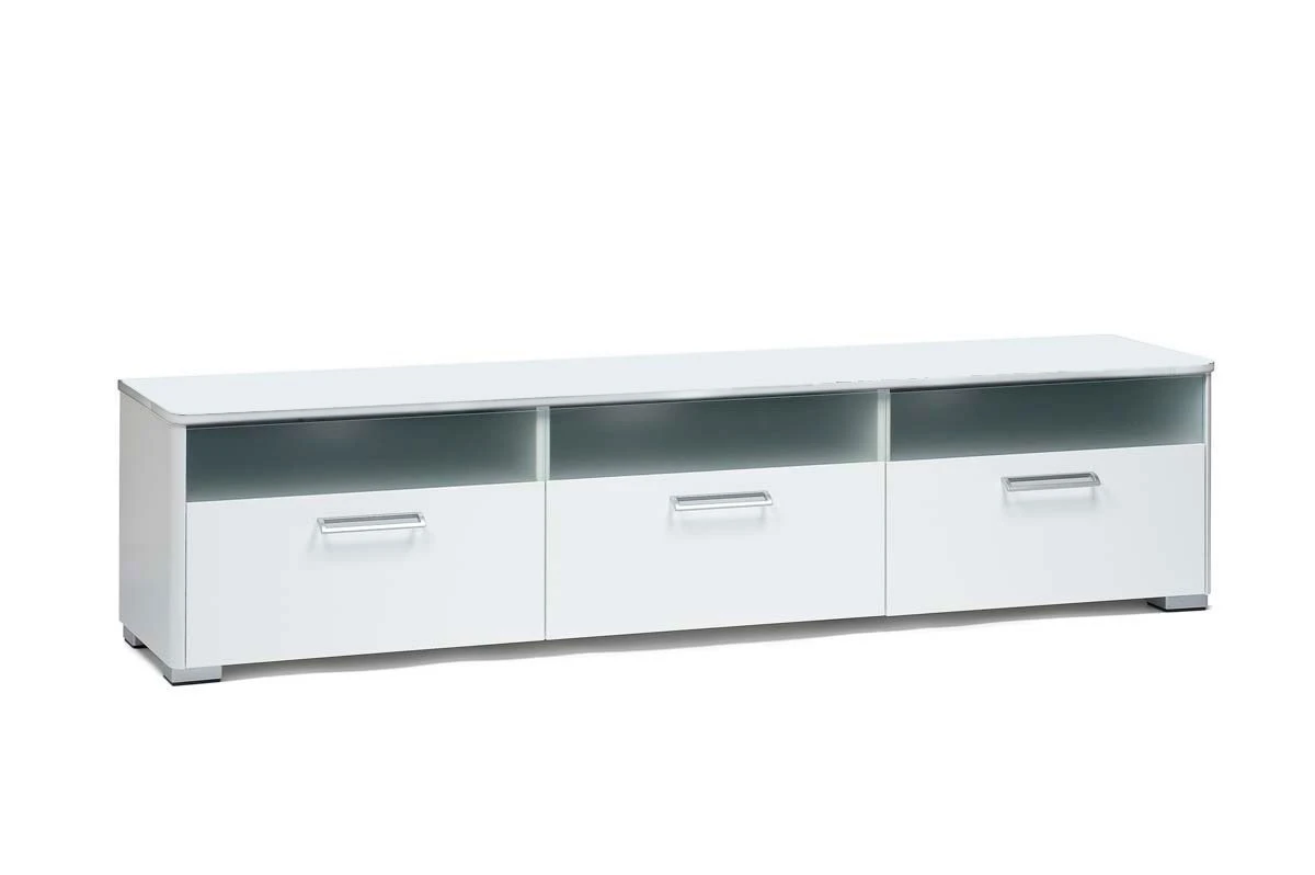 Pitkässä Helmi tv-tasossa on kolme laatikkoa ja niiden lisäksi kolme avohyllyä, joiden edessä on kaunis maitolasi. Laatikot on erittäin helppo avata niissä olevien hyvien vetimien ja laatikoiden laadukkaiden metallikiskojen ansiosta. Jämäkät Helmi-kalusteet toimitetaan valmiiksi koottuina. Ainoastaan vetimet tulee kiinnittää itse.
