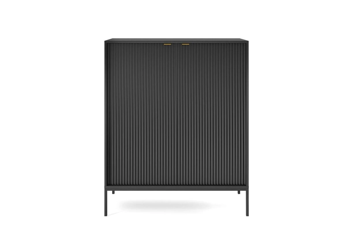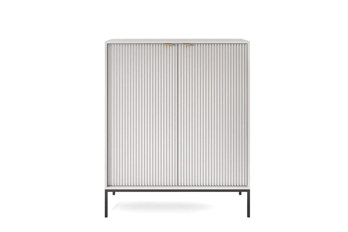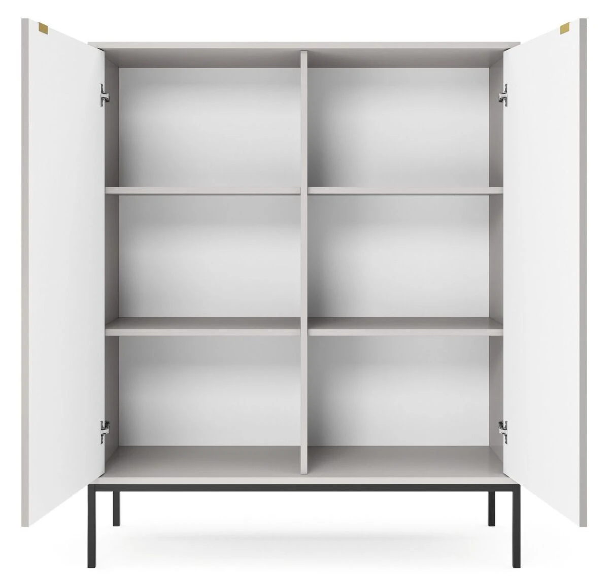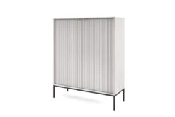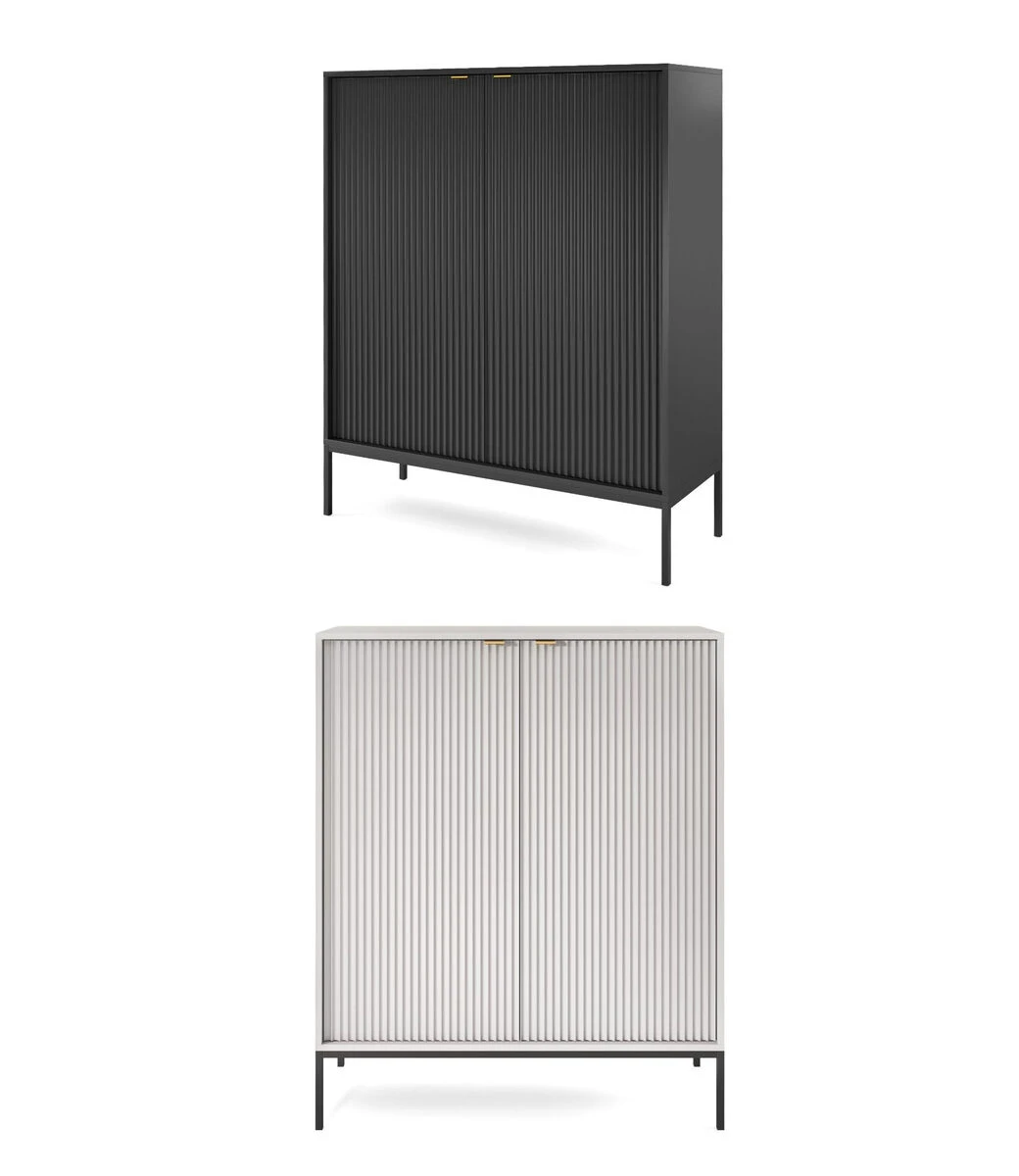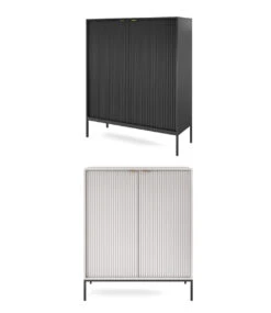 Tyylikkääsä ja sirossa Latte-tuotesarjan kaapissa on ovien takana on väliseinän molemmin puolin kaksi välihyllyä. Etusarjoissa olevat urat antavat kaapille kauniin, yksilöllisen ilmeen. Saatavana mustana tai greigenä.