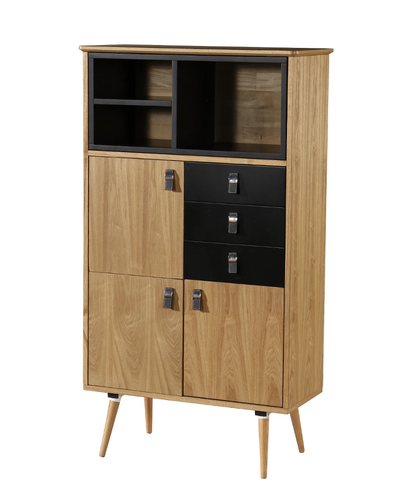 - Kolme ovikaappia, kolme vetolaatikkoa, sekä kolme avohyllyä