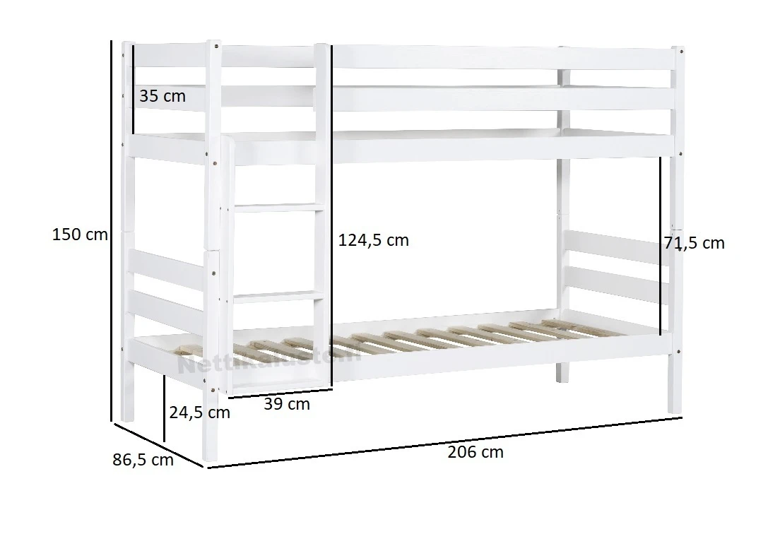 - Ylä- ja alasängyn välitilan korkeus: 71,5 cm