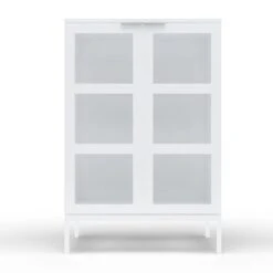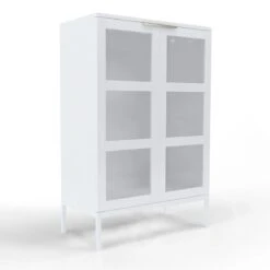 Siera lasiovikaapin valkoinen väri yhdistettynä metallijalkaan ja kahvaan luo modernin ja hillityn tyylikkään kokonaisuuden.