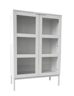 Siera lasiovikaapin valkoinen väri yhdistettynä metallijalkaan ja kahvaan luo modernin ja hillityn tyylikkään kokonaisuuden.