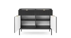 Etusarjoissa olevat urat antavat tv-tasolle kauniin, yksilöllisen ilmeen. Saatavana mustana ja greigenä.