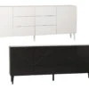 - Valkoisessa etusarjat ovat maalattua MDF-levyä ja mustassa puukuvioista MFC-kalustelevyä
