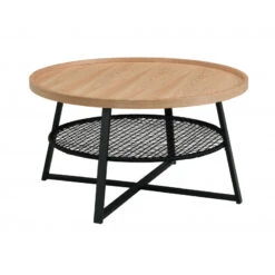 Mode sohvapöytä on trendikäs yhdistelmä mustaksi maalattua metallia ja luonnollista tammea. Pöydässä on muovirottingista punottu alataso, joka tarjoaa mukavasti säilytystilaa pikkutavaroille.