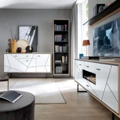 Huipputyylikäs Palermo tuotesarjan tv-taso kahdella umpiovikaapilla ja kahdella vetolaatikolla. Tuotesarjaa koristaa kauniit abstaktit koristekuvioinnit.