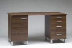 Tyylikäs Rooma-sarjan kirjoituspöytä kaapilla ja neljällä vetolaatikolla. Kirjoituspöytä on valmistettu kotimaassa ja materiaalina on käytetty laadukasta kalustelevyä.