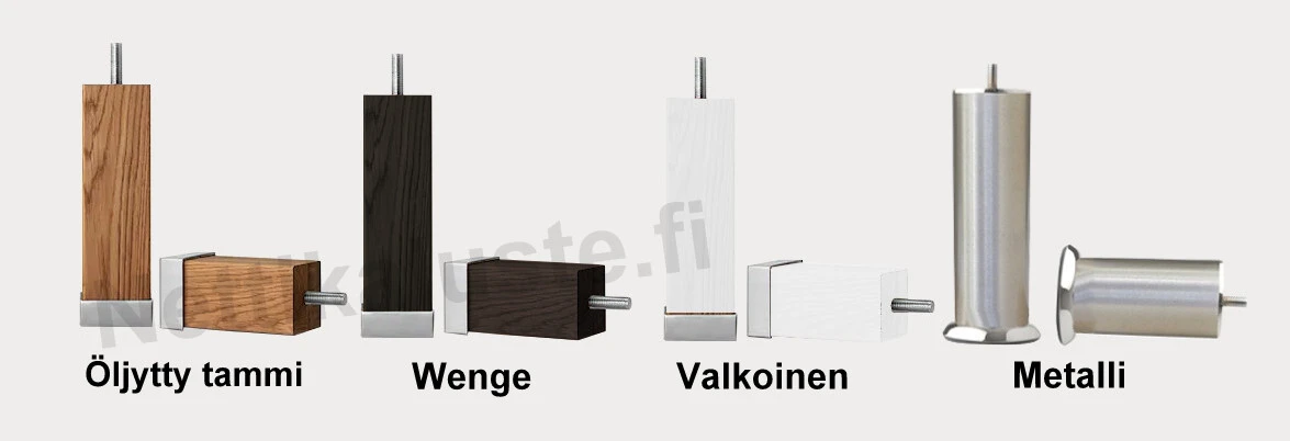 - Jalat massiivipuuta tai metallia, useita vÀrivaihtoehtoja
