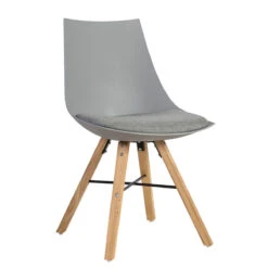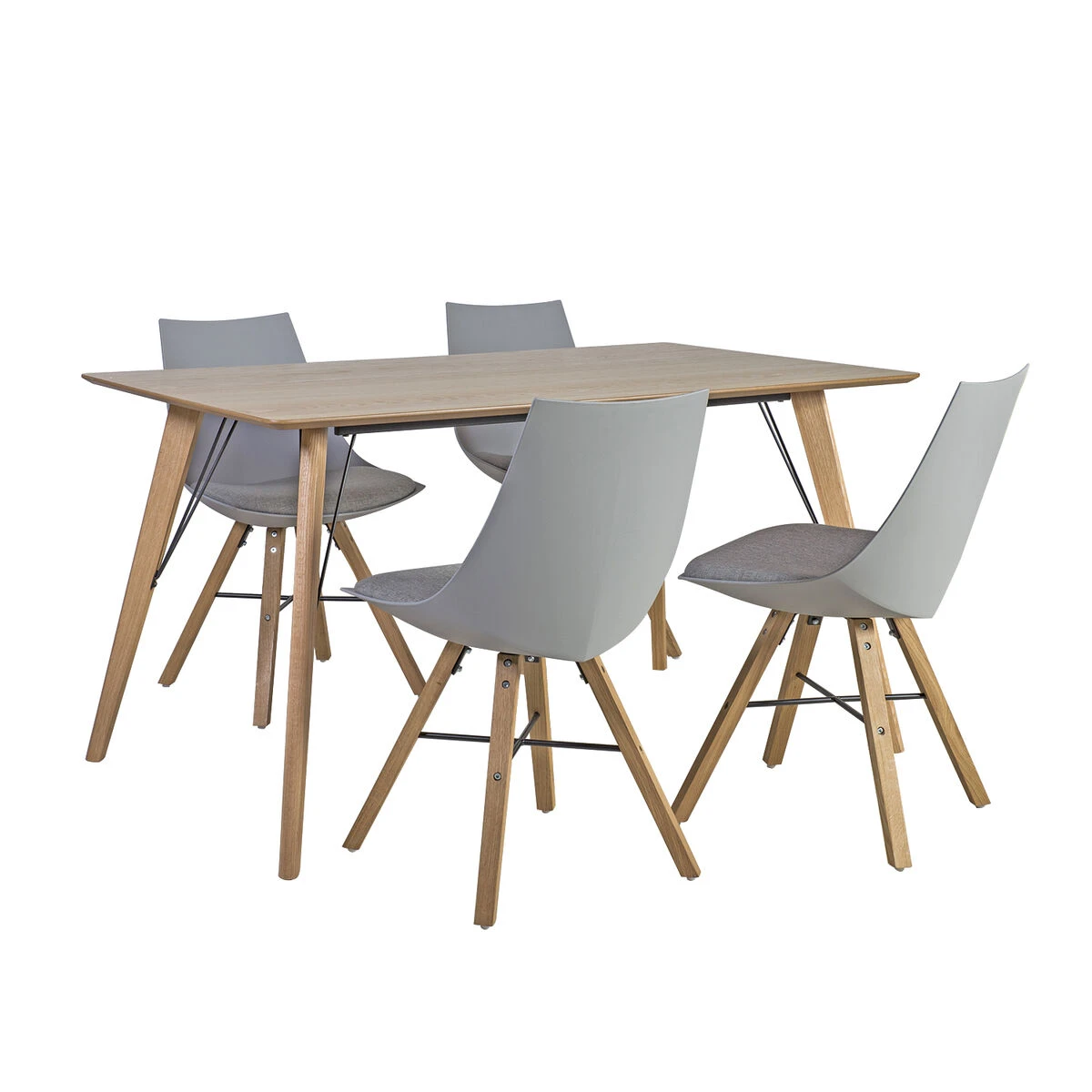 TrendikÀs Eliisa ruokaryhmÀ nÀyttÀvillÀ harmailla ABS-muovituoleilla.