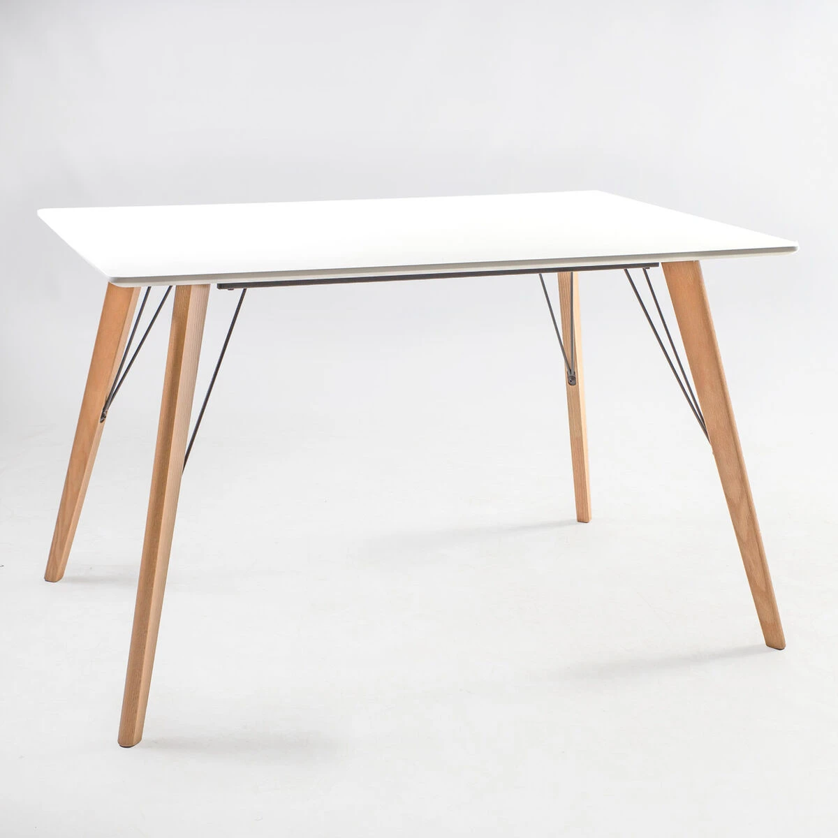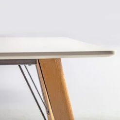 Trendikkäässä Alvo ruokapöydässä on yhdistetty valkoista ja tammea tyylikkäällä tavalla.