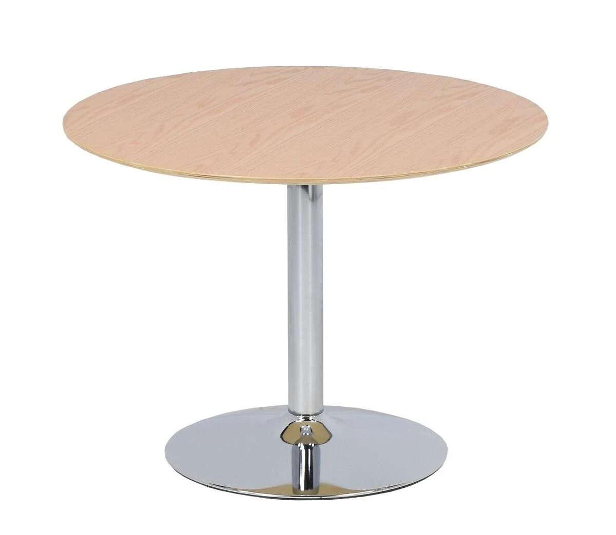Pyöreän muotonsa ansiosta ruokapöytä sopii monenlaisiin tiloihin, myös pieniinkin, ja sen ympärille mahtuu mukavasti neljä tuolia.