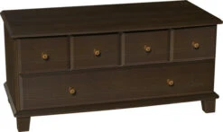 Materiaali pähkinänruskea massiivimänty, vetimet ja laatikoiden liukukiskot metalliset.