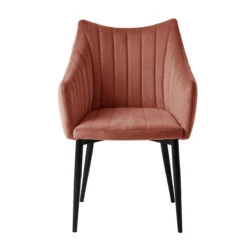 Moderni samettikankainen Olivia tuoli kuppimaisella istuimella ja selkänojalla. Tuolissa on koristeelliset tikkaukset ja pehmustettu istuin ja selkänoja.Â