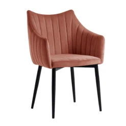 Moderni samettikankainen Olivia tuoli kuppimaisella istuimella ja selkänojalla. Tuolissa on koristeelliset tikkaukset ja pehmustettu istuin ja selkänoja.Â