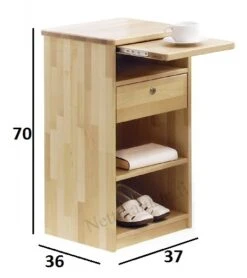 - Pöydässä lukollinen laatikko, vetotaso ja kolme avohyllyä