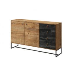 Kero tuotesarjan senkki on tyylikäs yhdistelmä tammea ja mustaa. Kokonaisuuden viimeistelee trendikkäät metallijalat ja nahkavetimet.