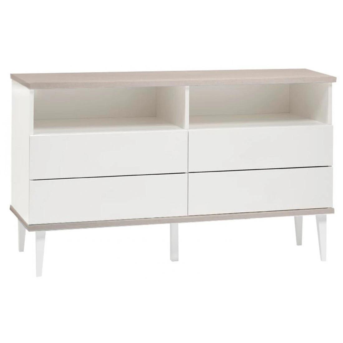 Taiga 5.5 senkissä on 4 tilavaa vetolaatikkoa sekä 2 avotasoa. Laatikot avautuvat push-open ponnahdusmekanismilla. Laatikoiden etulevyjen yläreunaan on upotettu kirkkaat lasit, jotka liukuvat laatikoiden mukana ja peittävät tason avonaisen ylähyllyn laatikon ollessa kiinni.Taiga 5.5 senkki on myös erinomainen valinta tv-tasoksi olohuoneeseen!