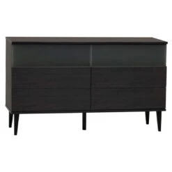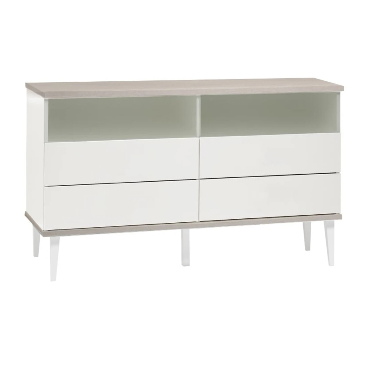 Taiga 5.6 senkissä on 4 tilavaa vetolaatikkoa sekä 2 avotasoa. Laatikot avautuvat push-open ponnahdusmekanismilla. Laatikoiden etulevyjen yläreunaan on upotettu himmeät maitolasit, jotka liukuvat laatikoiden mukana ja peittävät tason avonaisen ylähyllyn laatikon ollessa kiinni.Taiga 5.6 senkki on myös erinomainen valinta tv-tasoksi olohuoneeseen!