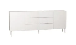 200 cm leveässä Vilja senkissä on 2 umpiovikaappia välihyllyillä sekä 6 vetolaatikkoa.