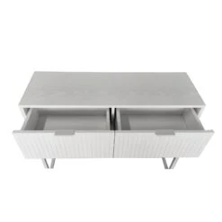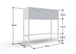 Siera sivupöydän valkoinen väri yhdistettynä metallijalkaan ja kahvaan luo modernin ja hillityn tyylikkään kokonaisuuden.