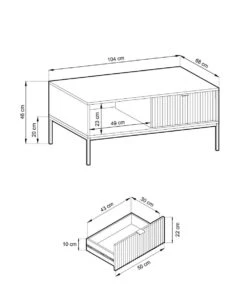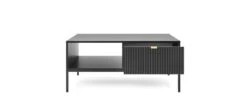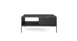 Tyylikkässä ja sirossa Latte sohvapöydässä on yksi vetolaatikko ja tilava avotaso. Etusarjoissa olevat urat antavat kauniin, yksilöllisen ilmeen. Saatavana mustana tai harmaana.