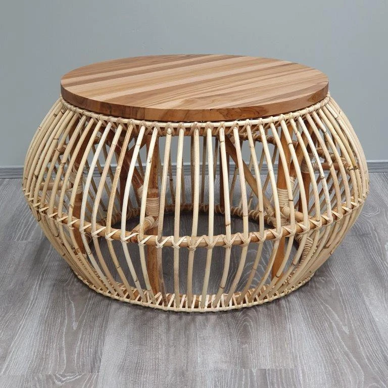 Kaunis Selandia sohvapöytä on helppo yhdistää erilaisiin sisustustyyleihin. Pöydässä yhdistyy tyylikkäästi rottinkinen jalkaosa ja aitopuinen kansi, jossa puunsyyt tulevat hienosti esiin ja antavat jokaiselle pöydälle yksilöllisen ilmeen.