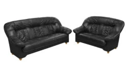Verhoilumateriaalina laadukas läpivärjätty Madras-nahka kestää kulutusta pitkään. Taustat ovat keinonahkaa. Pyöreät jalat ovat massiivipuuta kahdessa värivaihtoehdossa.