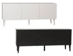 150 cm leveässä Vilja tasossa on 3 umpiovikaappia kahdella välihyllyllä. Tuote sopii erinomaisesti senkiksi tai tv-tasoksi.