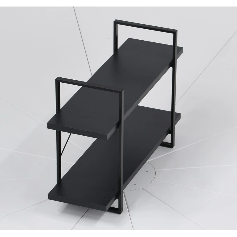 Selkeästi muotoillun Tokyo tuotesarjan hylly kahdella tasolla muotoutuu osaksi oman kodin sisustusta. Metallista valmistettu runko ja hyllytasojen kaunis puujäljitelmäpinta näyttävät siisteiltä ja tuovat esille laitetut tavarat kauniisti esiin.