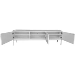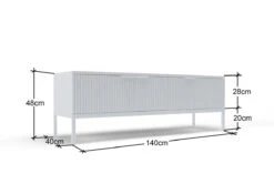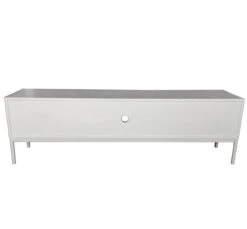 Siera tv-tason valkoinen väri yhdistettynä metallijalkaan ja kahvaan luo modernin ja hillityn tyylikkään kokonaisuuden.