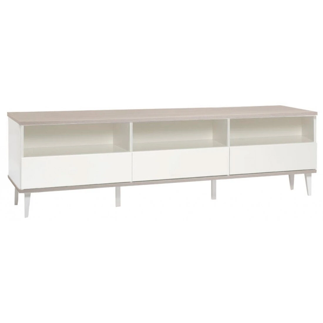 Taiga 3.4 tv-tasossa on 3 tilavaa vetolaatikkoa sekä 3 avotilaa esimerkiksi kodin viihdelaitteille. Laatikot avautuvat push-open ponnahdusmekanismilla ja liukuvat herkästi metallikiskoilla.