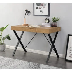Näppärä Moss työpöytä kodin kaikkiin tiloihin. Pöydässä on kätevä vetolaatikko metallisilla liukukiskoilla.