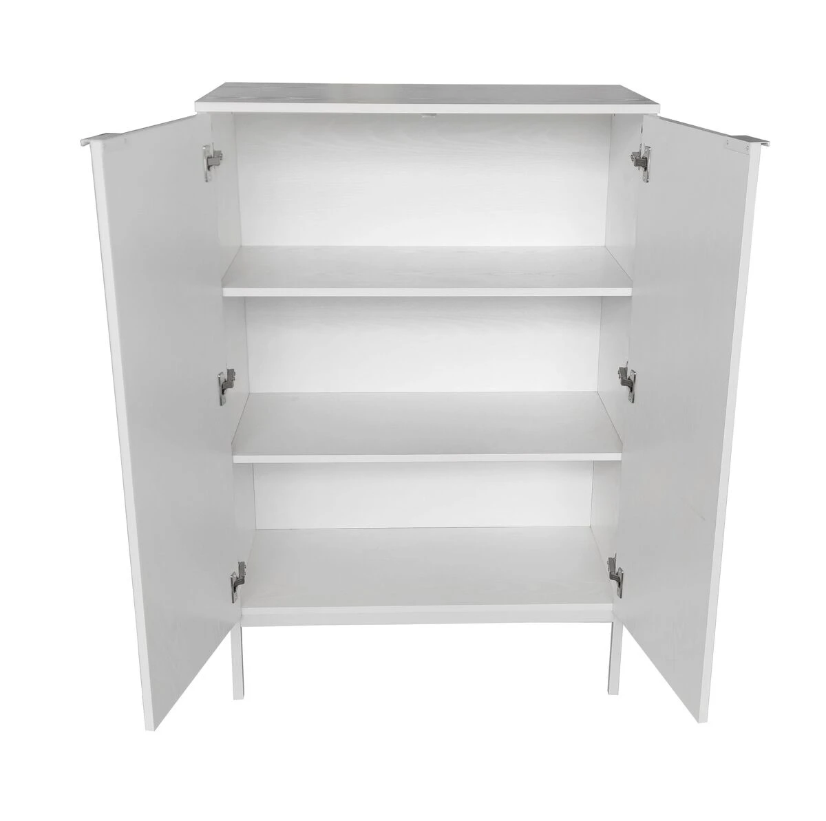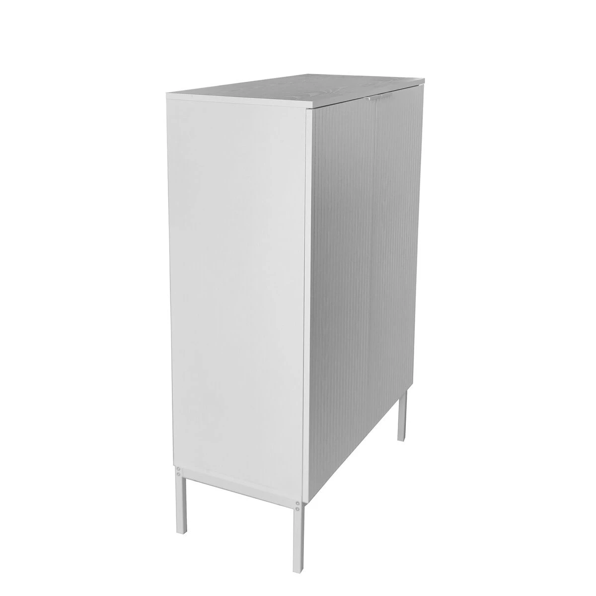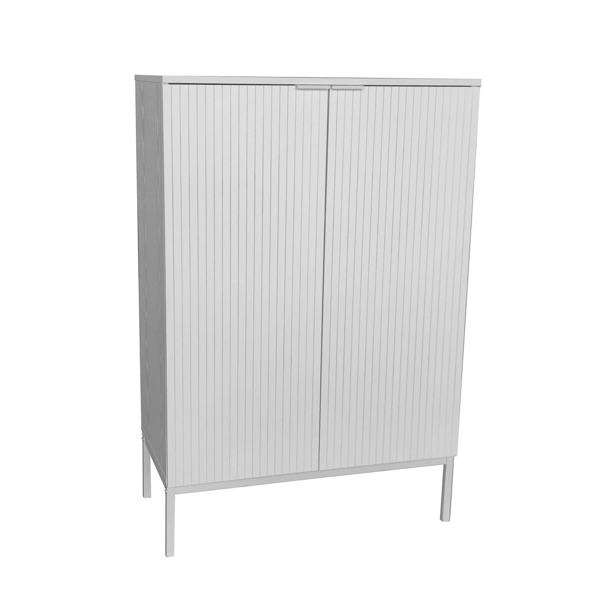 Siera kaapin valkoinen väri yhdistettynä metallijalkaan ja kahvaan luo modernin ja hillityn tyylikkään kokonaisuuden.