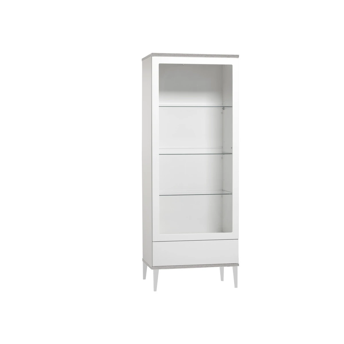 Taiga 9.2 vitriinissä on kolme lasista välihyllyä. Laatikot ja ovet avautuvat push-open ponnahdusmekanismilla.